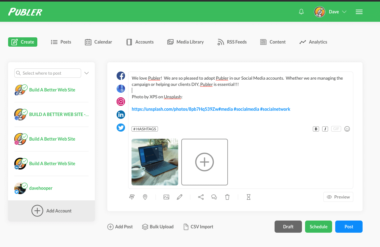 We alway say a website should be an online brochure and not a research project. Publer is as easy to use as we could hope. The setup is straight forward and not cryptic. It’s simple to set up your account, your company team and connect all your social media channels.
